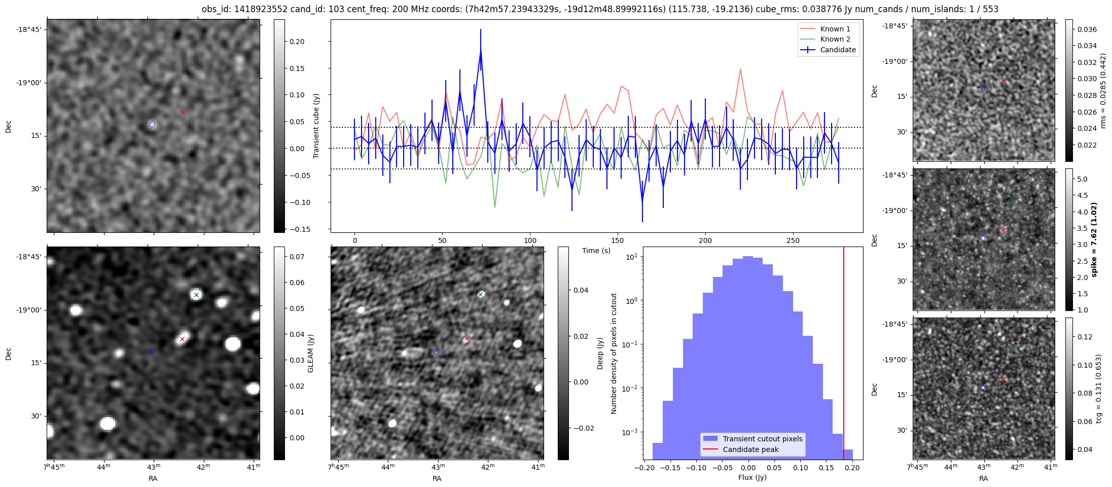| Id ⇅ | Rating count ⇅ | Notes ⇅ | RA ⇅ | DEC ⇅ | OBSID ⇅ | Fluence (Jy.s) ⇅ | Detection Stat ⇅ | Preview | Metadata | Sep ⇅ |