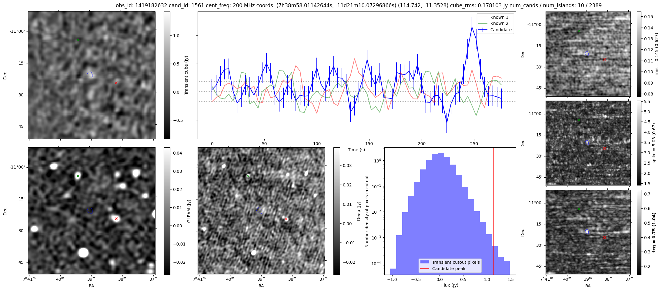 | Id ⇅ | Rating count ⇅ | Notes ⇅ | RA ⇅ | DEC ⇅ | OBSID ⇅ | Fluence (Jy.s) ⇅ | Detection Stat ⇅ | Preview | Metadata | Sep ⇅ |