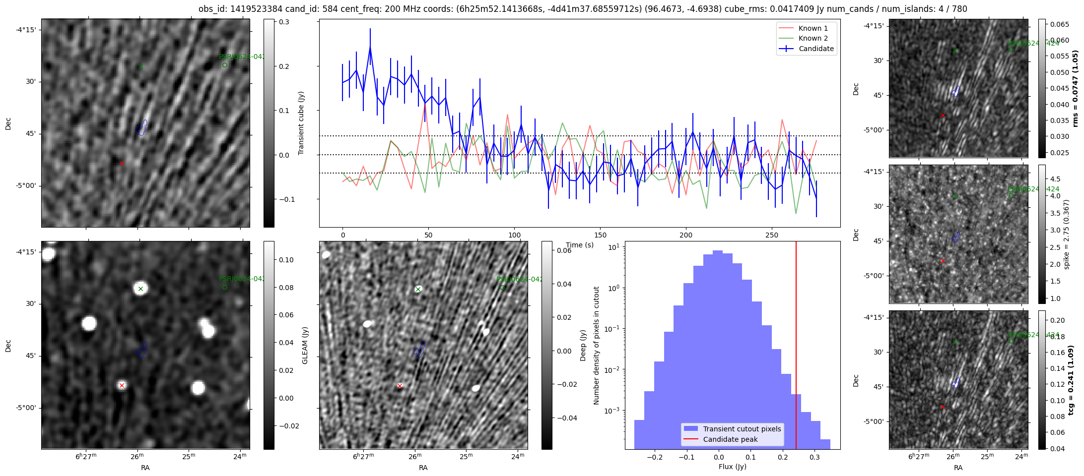 | Id ⇅ | Rating count ⇅ | Notes ⇅ | RA ⇅ | DEC ⇅ | OBSID ⇅ | Fluence (Jy.s) ⇅ | Detection Stat ⇅ | Preview | Metadata | Sep ⇅ |