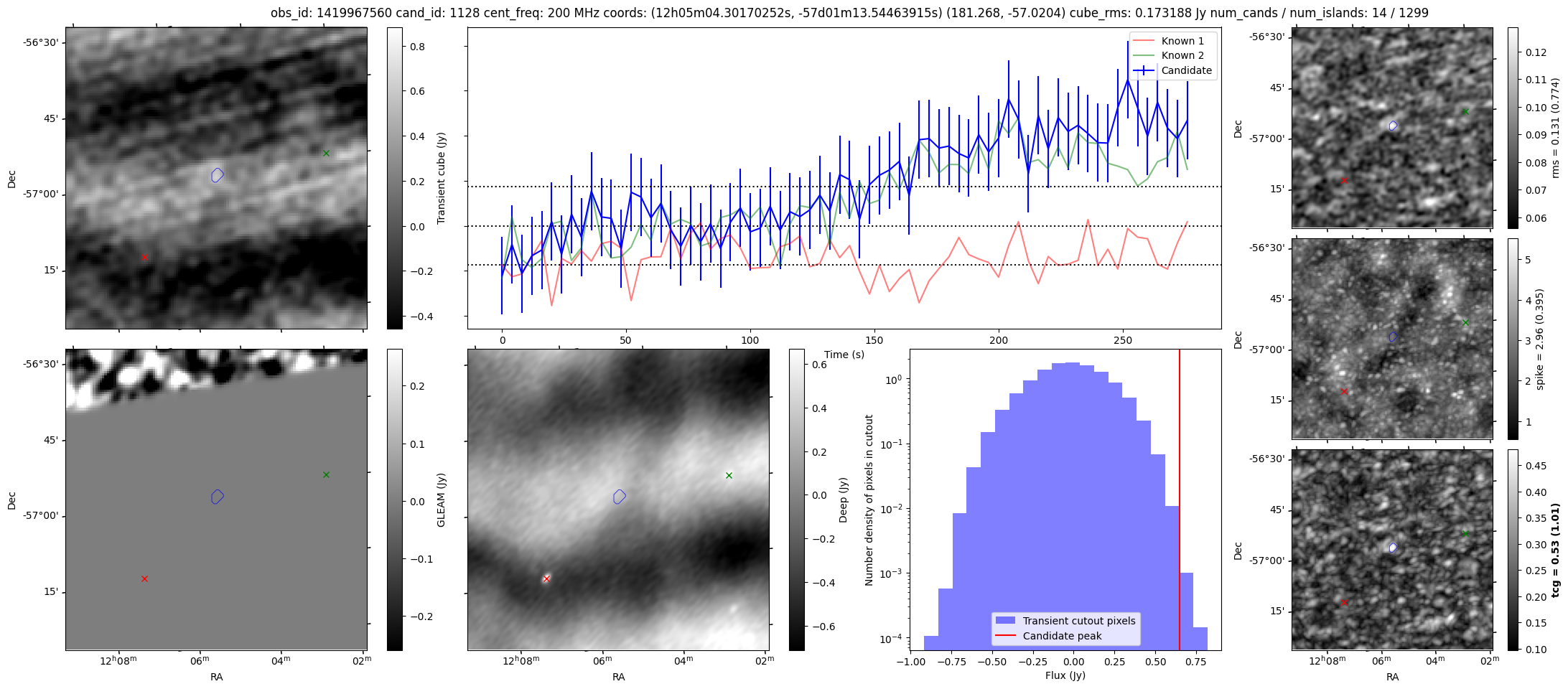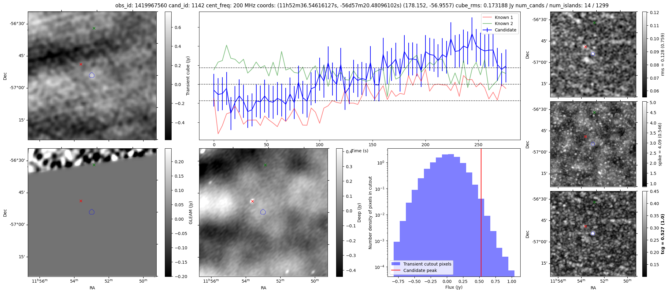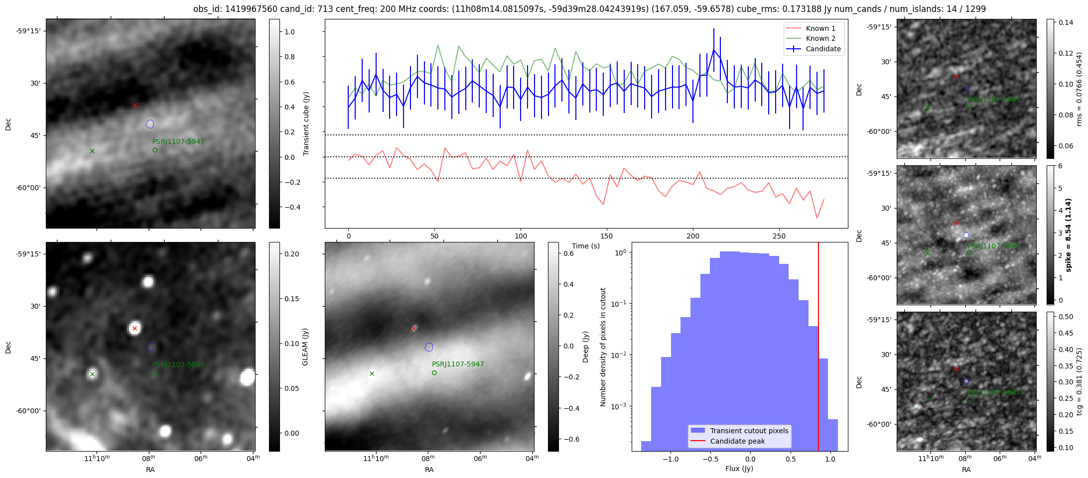 | Id ⇅ | Rating count ⇅ | Notes ⇅ | RA ⇅ | DEC ⇅ | OBSID ⇅ | Fluence (Jy.s) ⇅ | Detection Stat ⇅ | Preview | Metadata | Sep ⇅ |