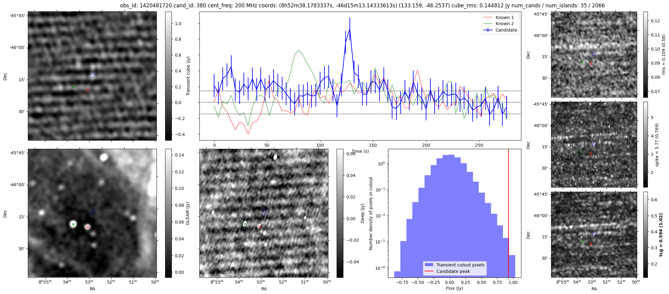 | Id ⇅ | Rating count ⇅ | Notes ⇅ | RA ⇅ | DEC ⇅ | OBSID ⇅ | Fluence (Jy.s) ⇅ | Detection Stat ⇅ | Preview | Metadata | Sep ⇅ |