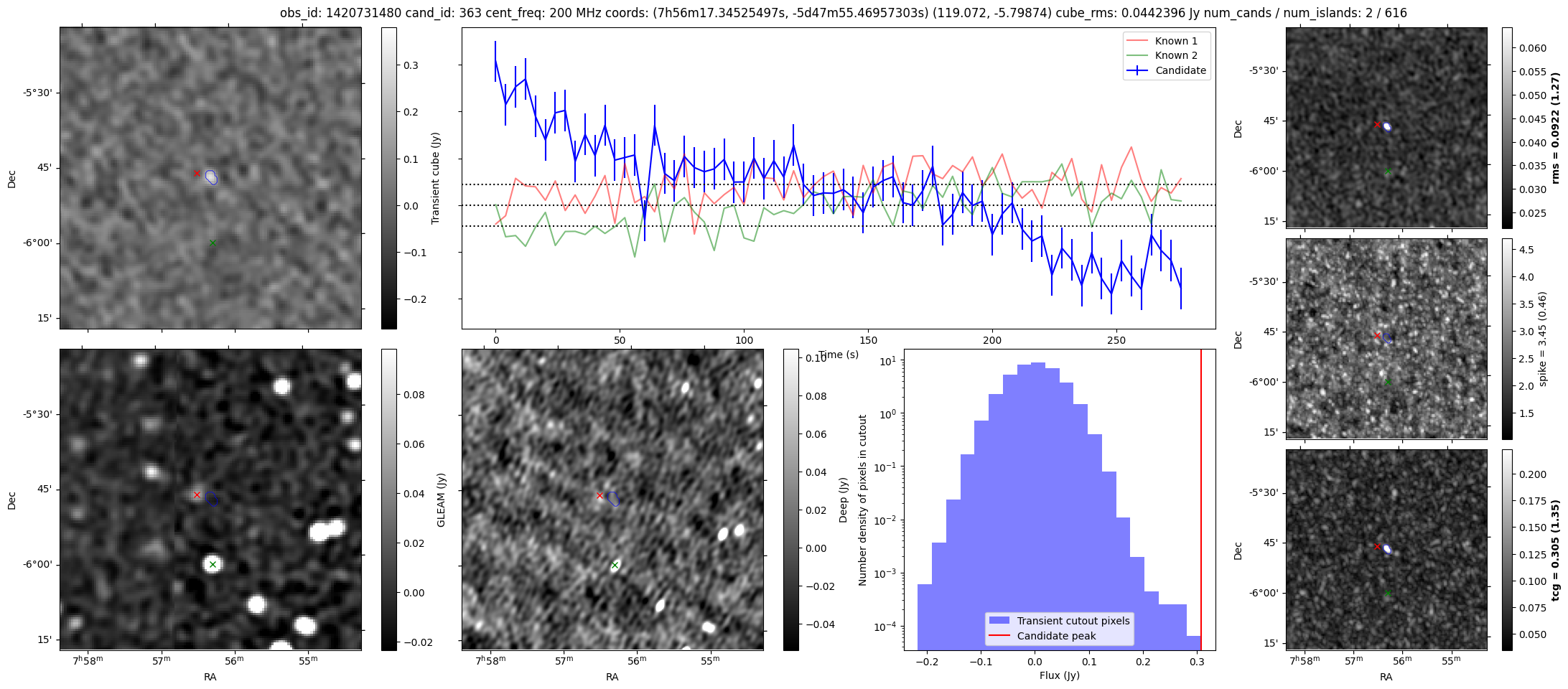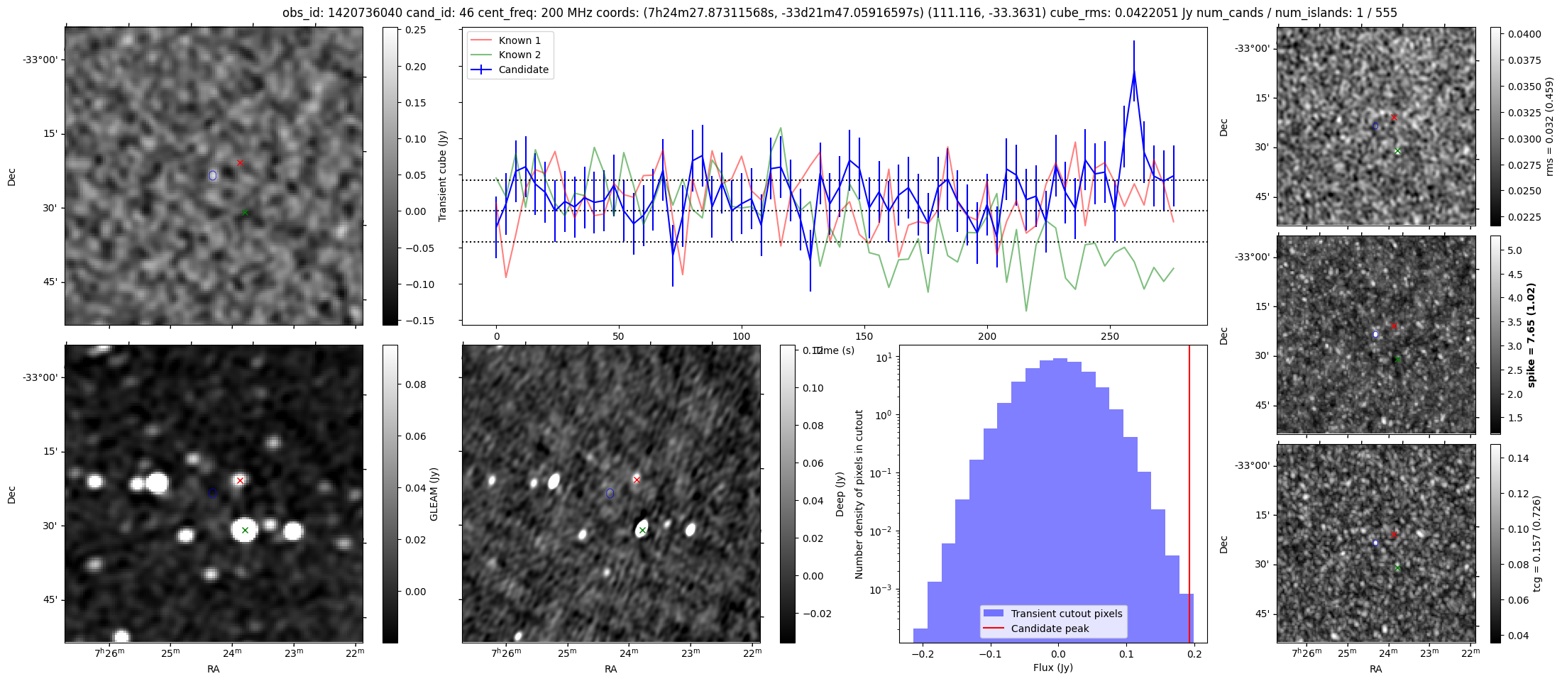 | Id ⇅ | Rating count ⇅ | Notes ⇅ | RA ⇅ | DEC ⇅ | OBSID ⇅ | Fluence (Jy.s) ⇅ | Detection Stat ⇅ | Preview | Metadata | Sep ⇅ |