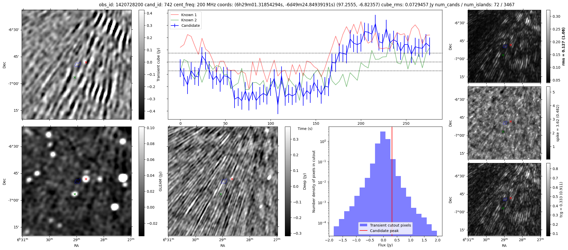 | Id ⇅ | Rating count ⇅ | Notes ⇅ | RA ⇅ | DEC ⇅ | OBSID ⇅ | Fluence (Jy.s) ⇅ | Detection Stat ⇅ | Preview | Metadata | Sep ⇅ |