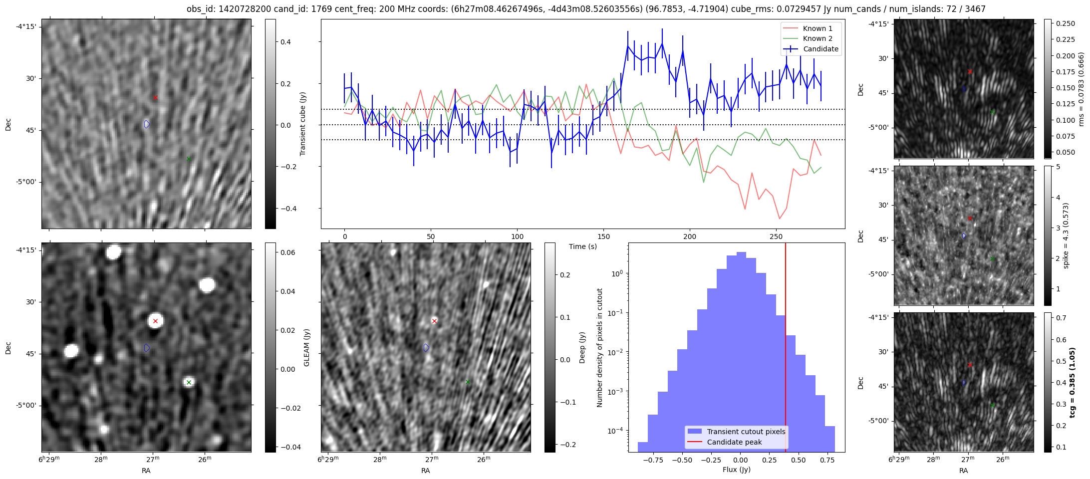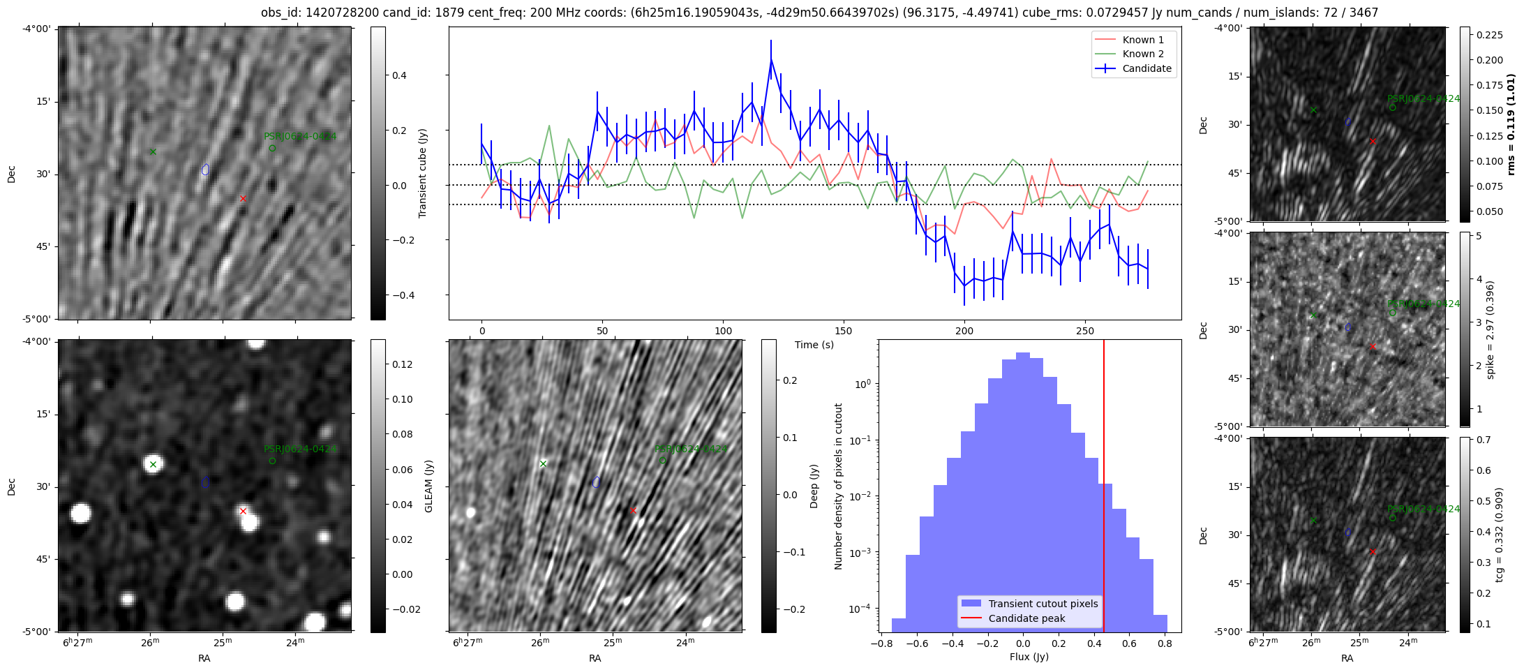 | Id ⇅ | Rating count ⇅ | Notes ⇅ | RA ⇅ | DEC ⇅ | OBSID ⇅ | Fluence (Jy.s) ⇅ | Detection Stat ⇅ | Preview | Metadata | Sep ⇅ |