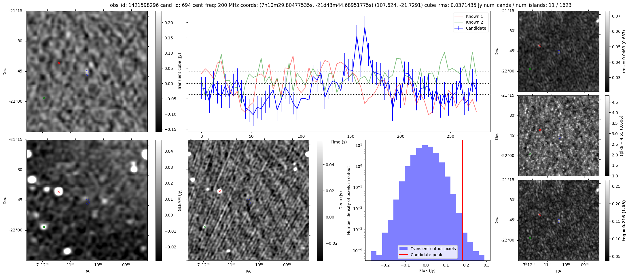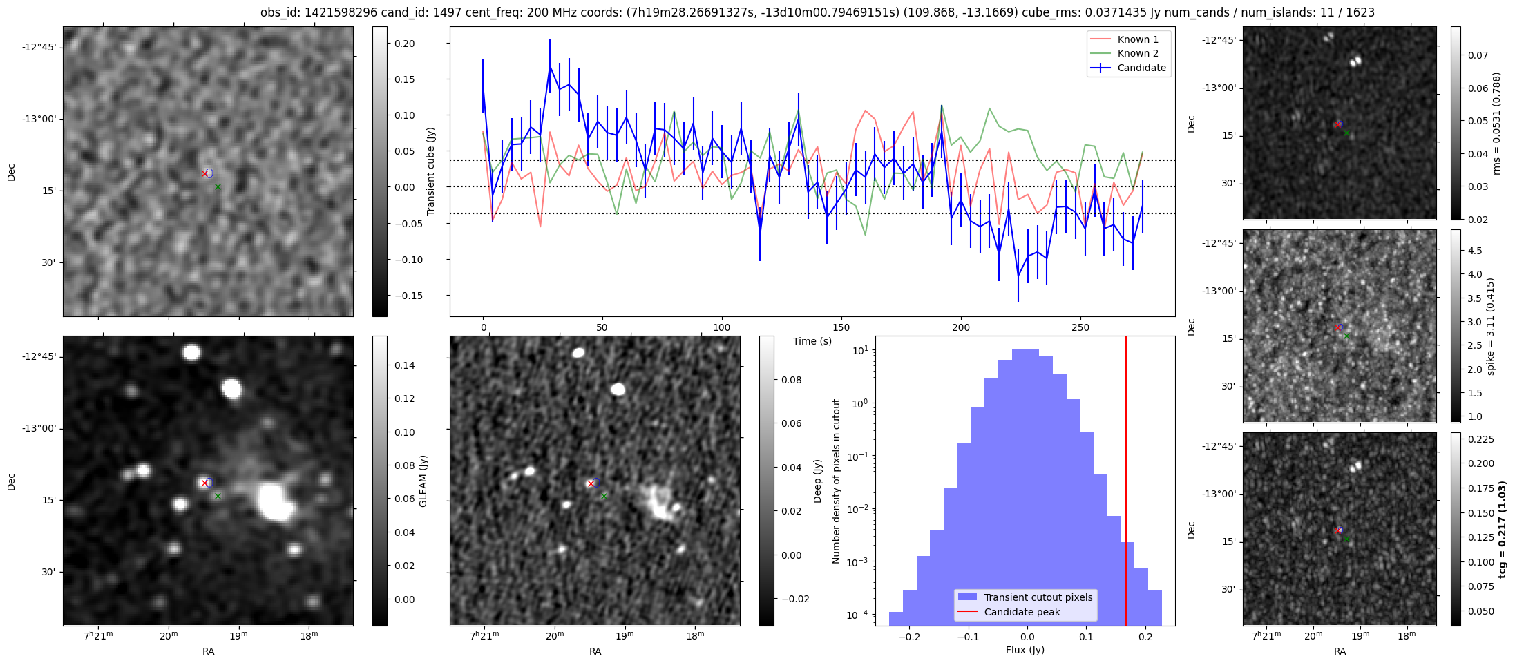 | Id ⇅ | Rating count ⇅ | Notes ⇅ | RA ⇅ | DEC ⇅ | OBSID ⇅ | Fluence (Jy.s) ⇅ | Detection Stat ⇅ | Preview | Metadata | Sep ⇅ |