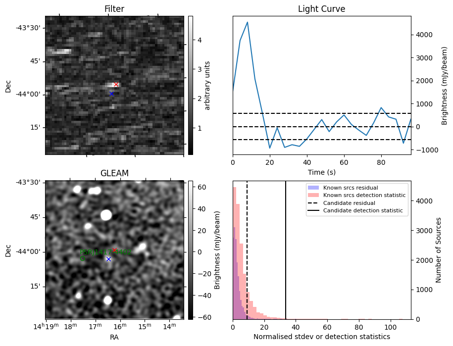 | Id ⇅ | Rating count ⇅ | Notes ⇅ | RA ⇅ | DEC ⇅ | OBSID ⇅ | Fluence (Jy.s) ⇅ | Detection Stat ⇅ | Preview | Metadata | Sep ⇅ |