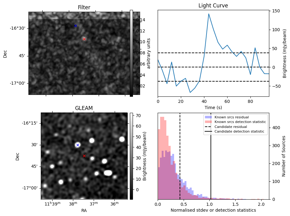 | Id ⇅ | Rating count ⇅ | Notes ⇅ | RA ⇅ | DEC ⇅ | OBSID ⇅ | Fluence (Jy.s) ⇅ | Detection Stat ⇅ | Preview | Metadata | Sep ⇅ |