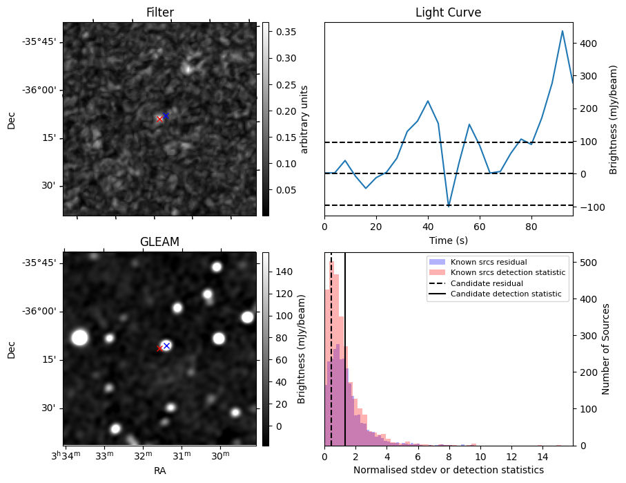 | Id ⇅ | Rating count ⇅ | Notes ⇅ | RA ⇅ | DEC ⇅ | OBSID ⇅ | Fluence (Jy.s) ⇅ | Detection Stat ⇅ | Preview | Metadata | Sep ⇅ |